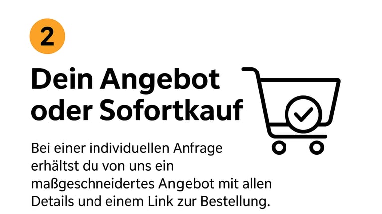 Bei einer individuellen Anfrage erhältst du von uns ein maßgeschneidertes Angebot mit allen Details und einem Link zur Bestellung.